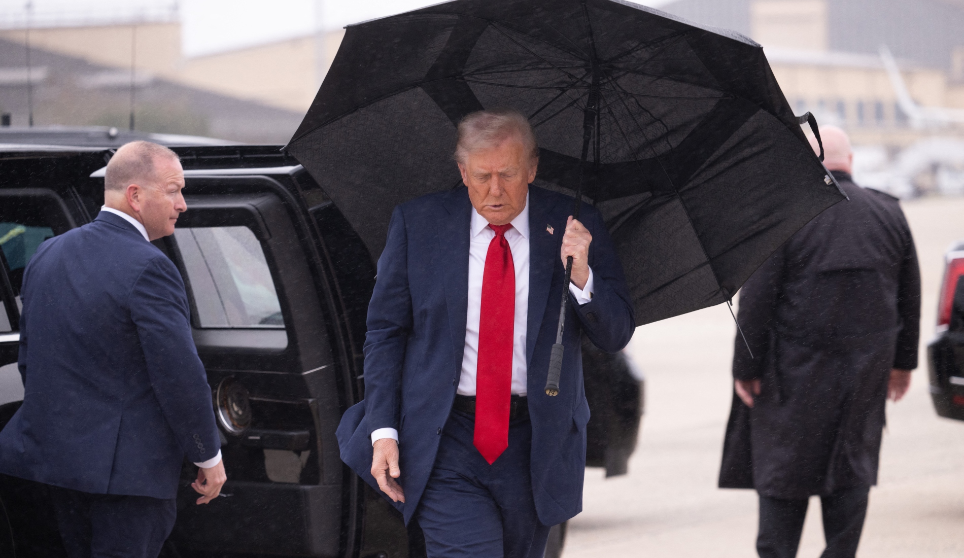 In the clip, Trump climbs the steps to reach the entrance to the plane. Instead of closing the umbrella, or really even attempting to, he tosses it aside to enter the plane. It might sound like nothing, but it’s a strange moment to see Trump have while tons of reporters clocking it and wondering what was going through his mind at the time.