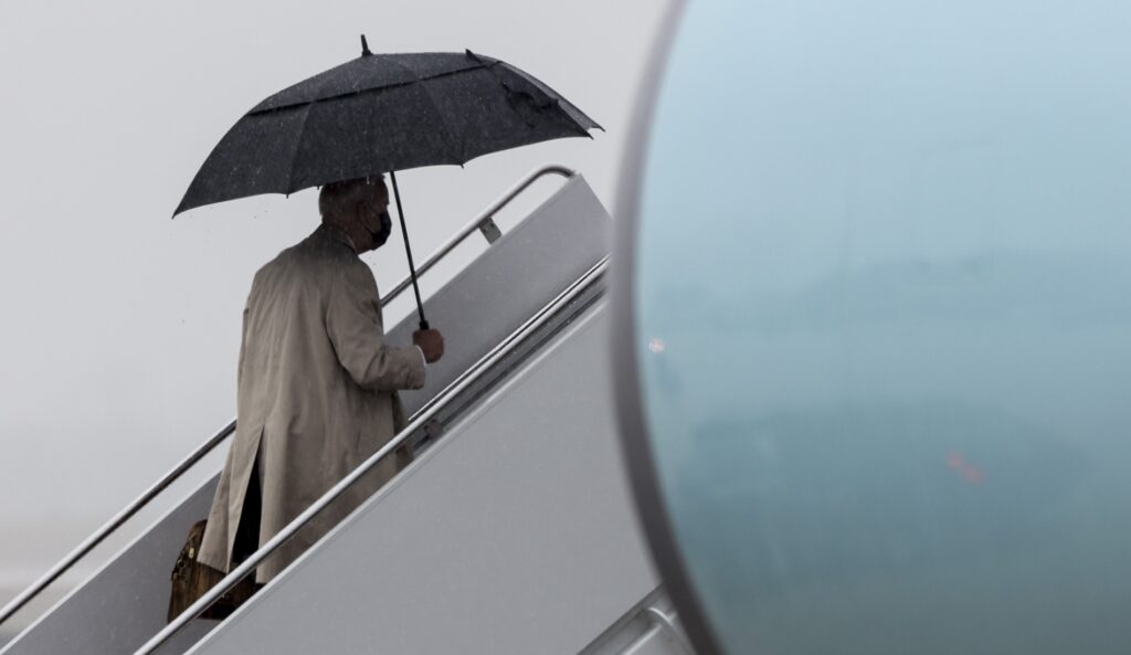 Although there are people standing at the ready to make gifs and memes of Trump with clips from that umbrella video, there are others who were ready to point out that Joe Biden once allegedly had a similar incident happen with him. And yes, it was caught on camera. In the clip, Biden attempts to close the umbrella after entering the plane from the outside rain, but he leaves it outside too. Though according to some, it’s a different scenario.