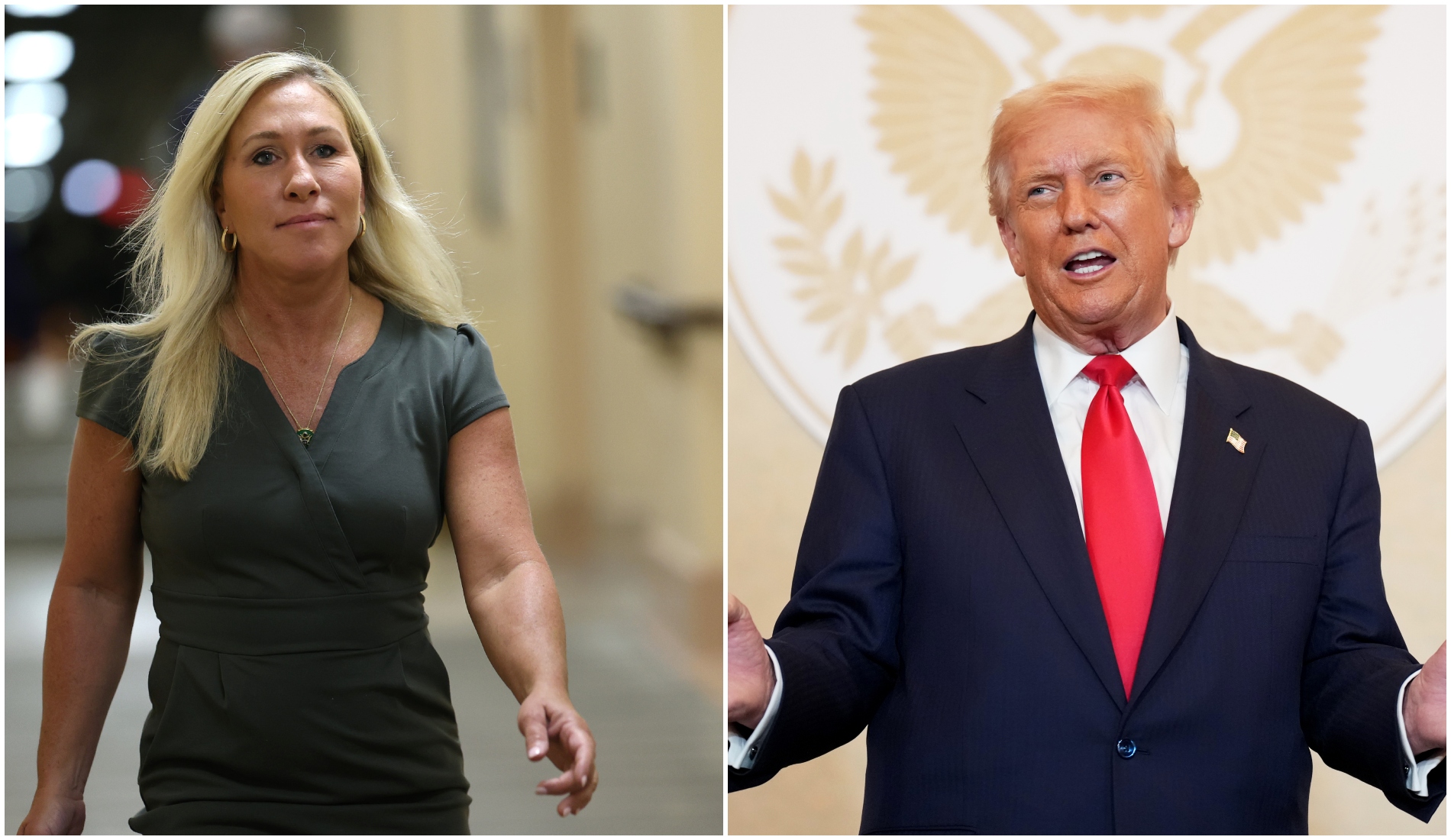 “When somebody like Marjorie Taylor Greene, who’s now catering to the other side, I don’t know, I guess she’s got some kind of an act going, but I’m surprised at her,” Trump says. “But when somebody like Marjorie goes over and starts making statements like that, it shows you she doesn’t know.”