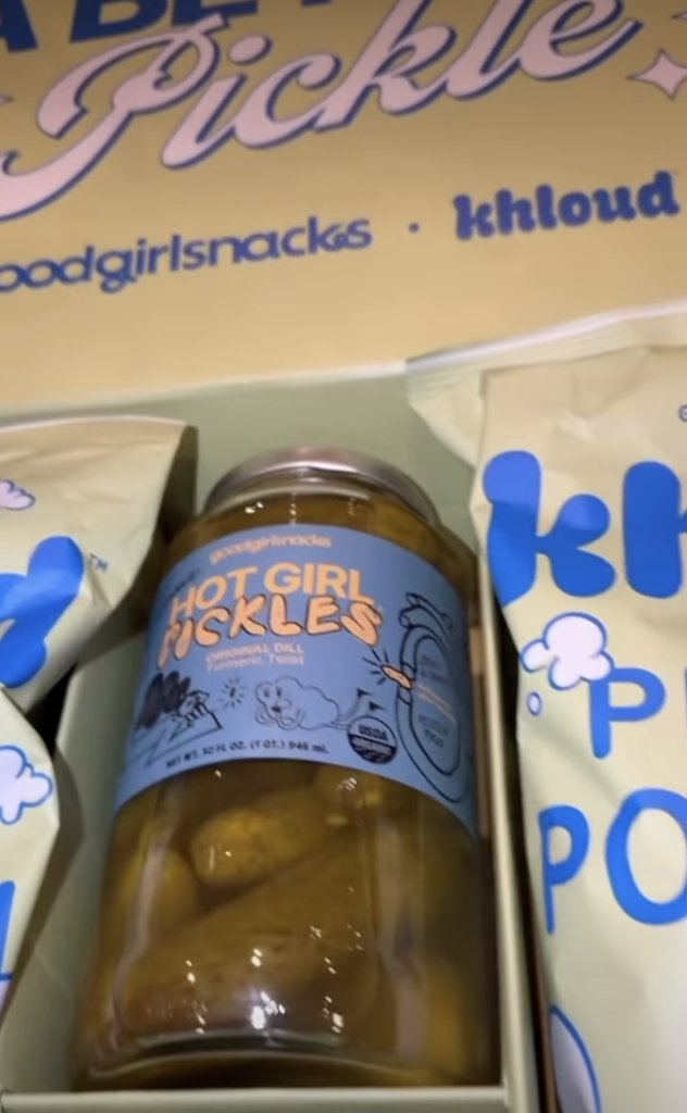 Then, True and Dream appeared, clearly excited to see what was inside the box. The inside of the box read, “Get yourself a better pickle,” and contained “Hot Girl Pickles” from goodgirlsnacks along with Khloé’s dill pickle popcorn. On the surface, it might not seem terribly offensive, but several people online argued that using your kids to try to promote your products is…not great.