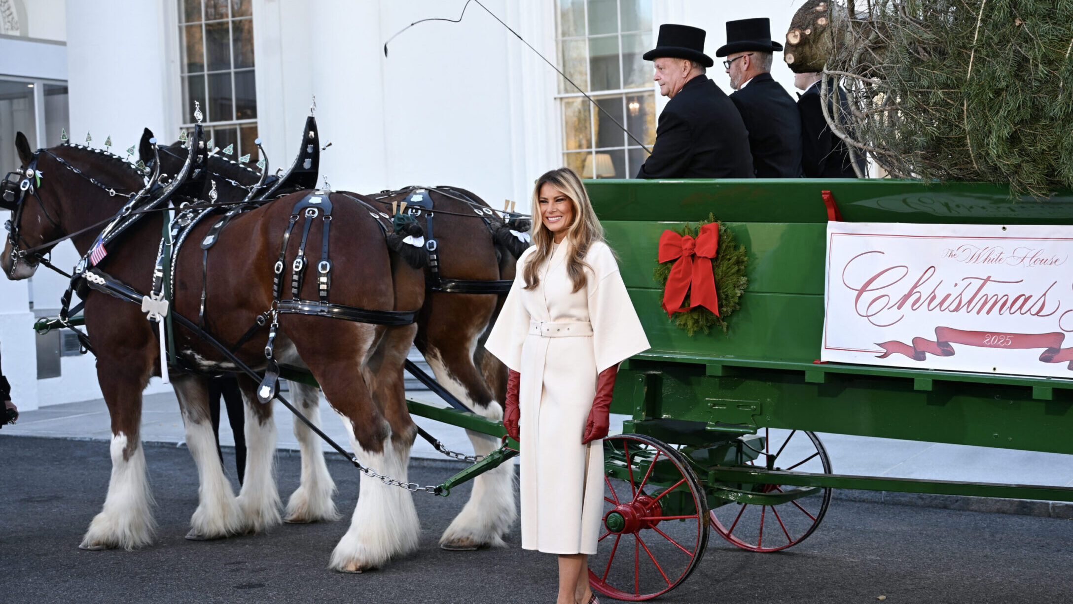 On Monday, November 24, Melania stepped out of the White House to welcome the arrival of this year’s White House Christmas tree. This year’s Christmas tree comes from Korson’s Tree Farms in Michigan.