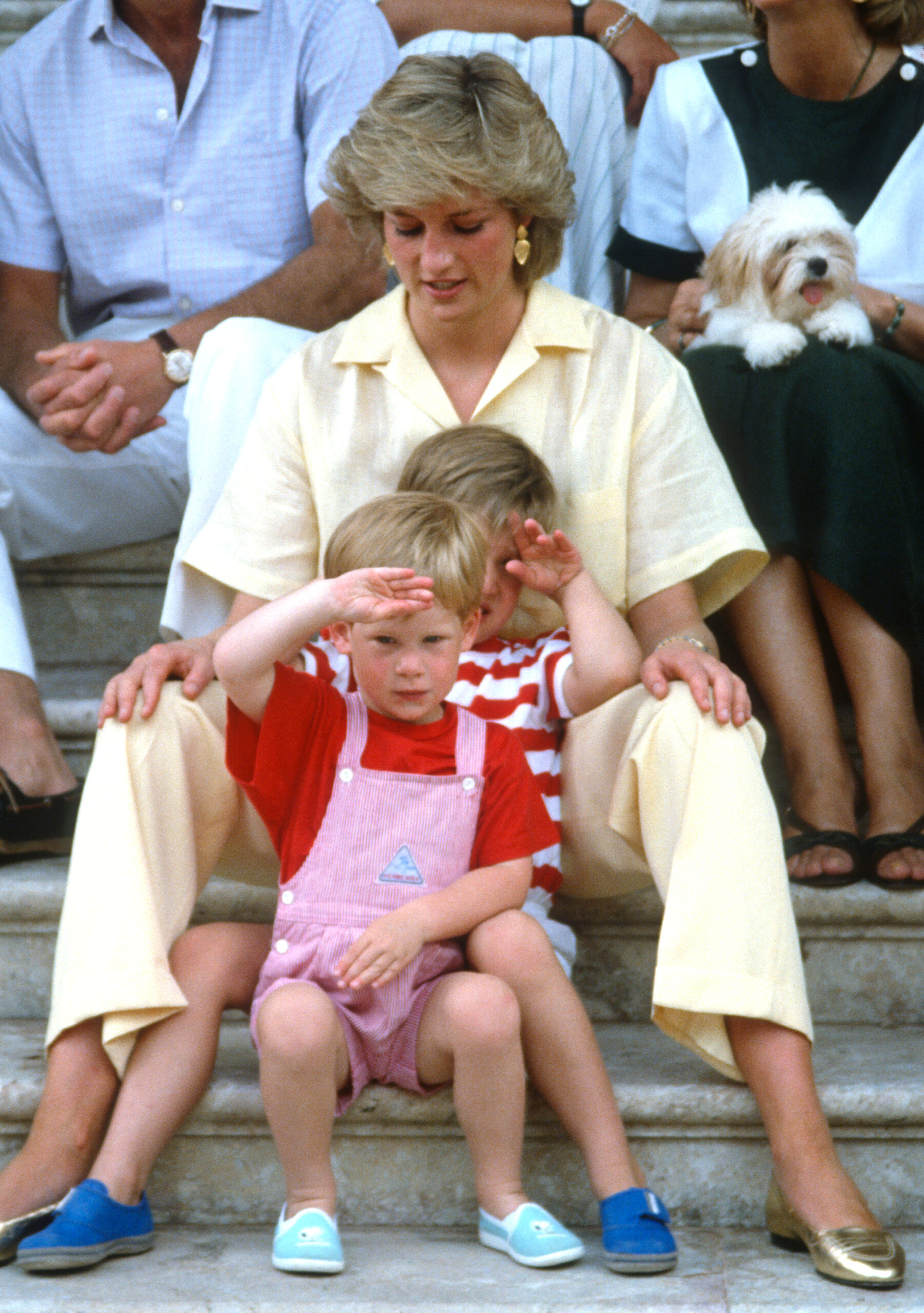 Once Harry entered the picture, Diana's hands were fuller than ever, so she and Charles did a little tag-teaming. This photo shows her returning from a two-week tour of Italy and reuniting with her precious boys, who she had to leave behind. The sheer joy of being back with them is evident on her face. And just look at William, already hamming it up for the cameras.