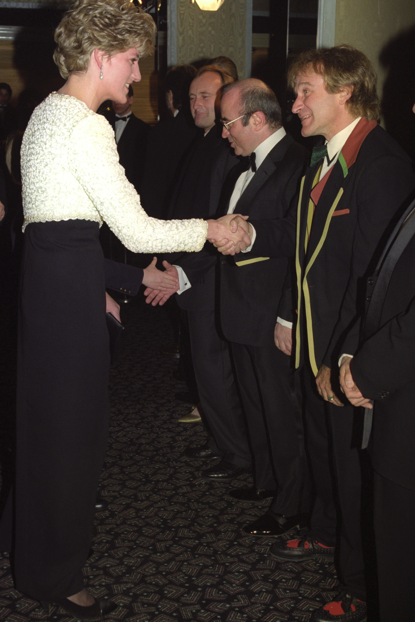 Diana was also at the London premiere of Hook, and she even brought sons Prince William and Prince Harry along with her, which made sense, since they were definitely the movie's target audience at the time. She even got to meet Robin Williams — two legends in one photo.