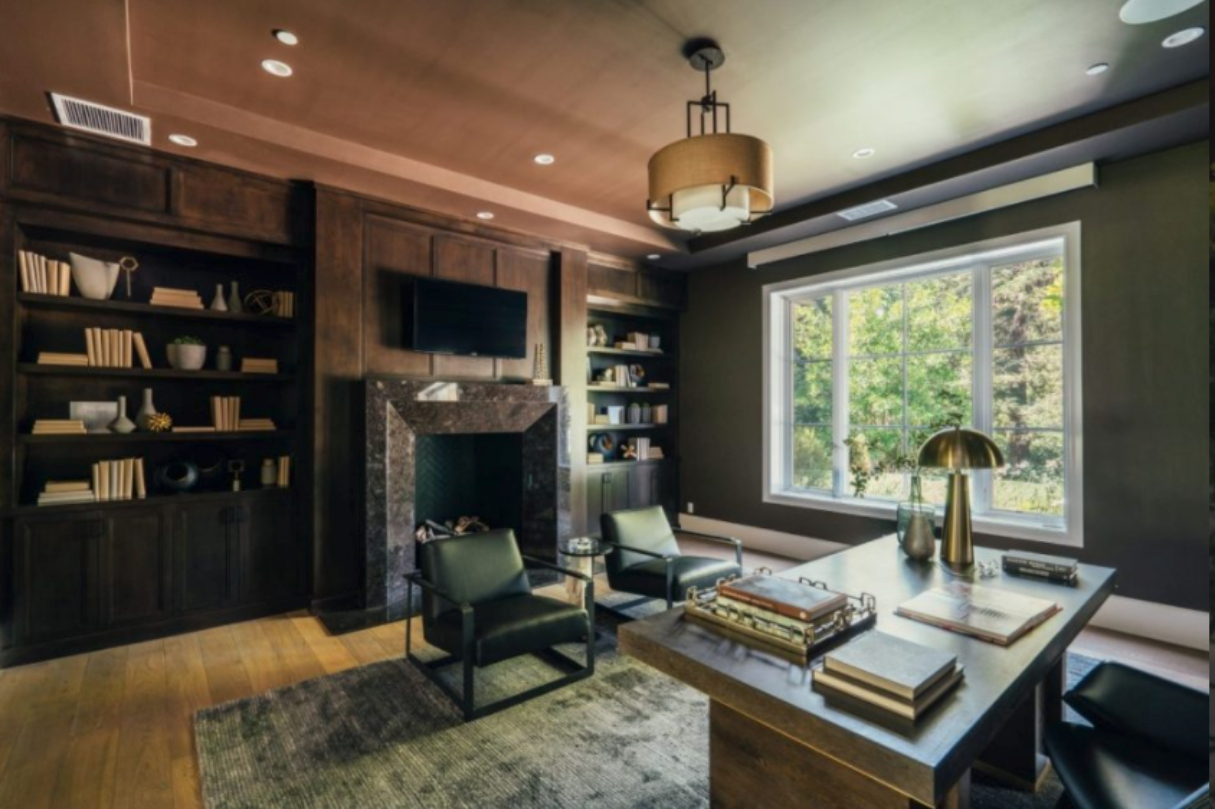 Honestly, we can't really picture The Weeknd chilling and writing lyrics in here, as dark as his video and music imagery can sometimes be. It's a very formal, very brown room, which is not to say that it isn't nice. We're sure he made many an offer that couldn't be refused in this office/library. That granite fireplace, for example, is a knockout.