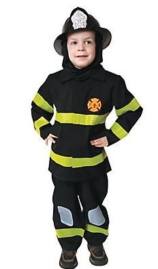 With those shiny red trucks, what little adventurer wouldn't want to be a firefighter for Halloween? (Firefighter costume, $28 from Oriental Trading)