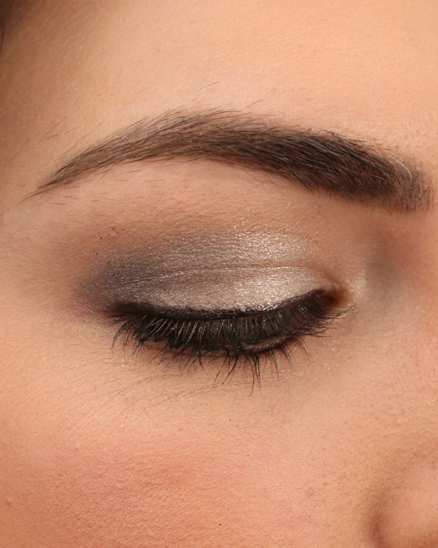 She selected a silver, five-pan smoky-eye palette by Sephora Collection to complement my eye color, but it looked far more metallic in the pan than it did on my eyelid.