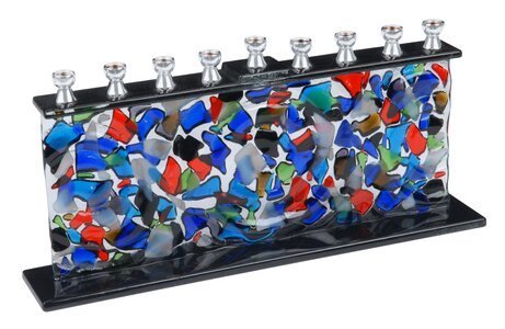 This is the perfect menorah for anyone who enjoys mosaics or glass work. It features red and deep blues. Plus, the glass is elegant and the colors stand out nicely.