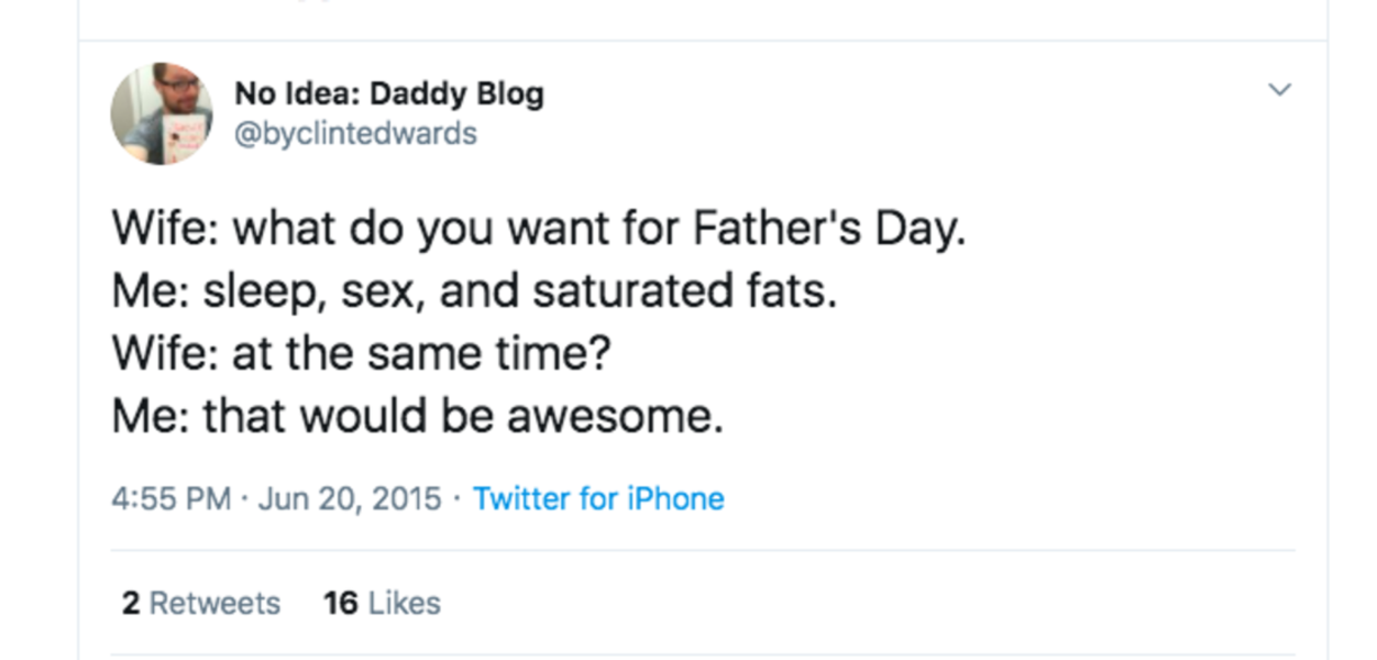 In honor of dads everywhere, who we know love nothing more than a good dad joke — except for maybe his kids — here are hilarious tweets about fathers and Father's Day. We laugh with you because you're our heroes.