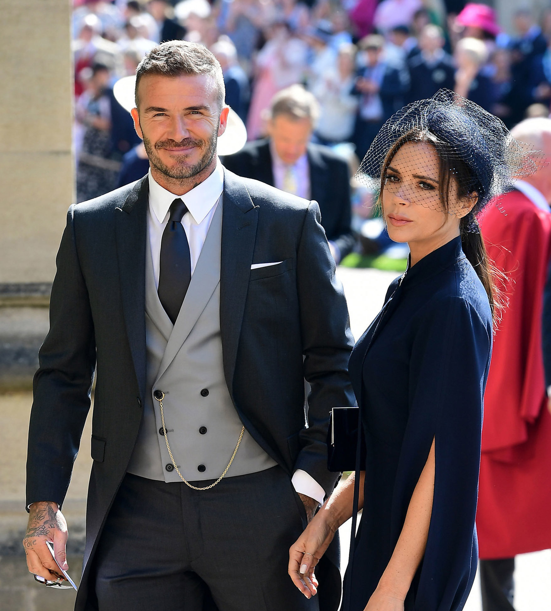 Victoria Beckham wore a navy fascinator with a tiny veil.