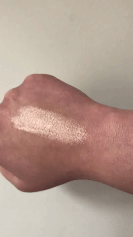 The appeal of this highlighter is that it's fast, subtle, and simple. I like to apply it in one of two ways, the first of which is to rub a bunch of it on the back of my hand, like so, to warm it up before picking it up with a dense foundation brush and pressing it where I want it.