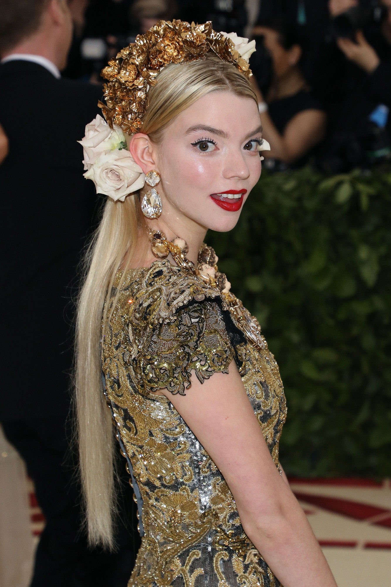 Anya Taylor-Joy's flower crown included pink and gold roses.
