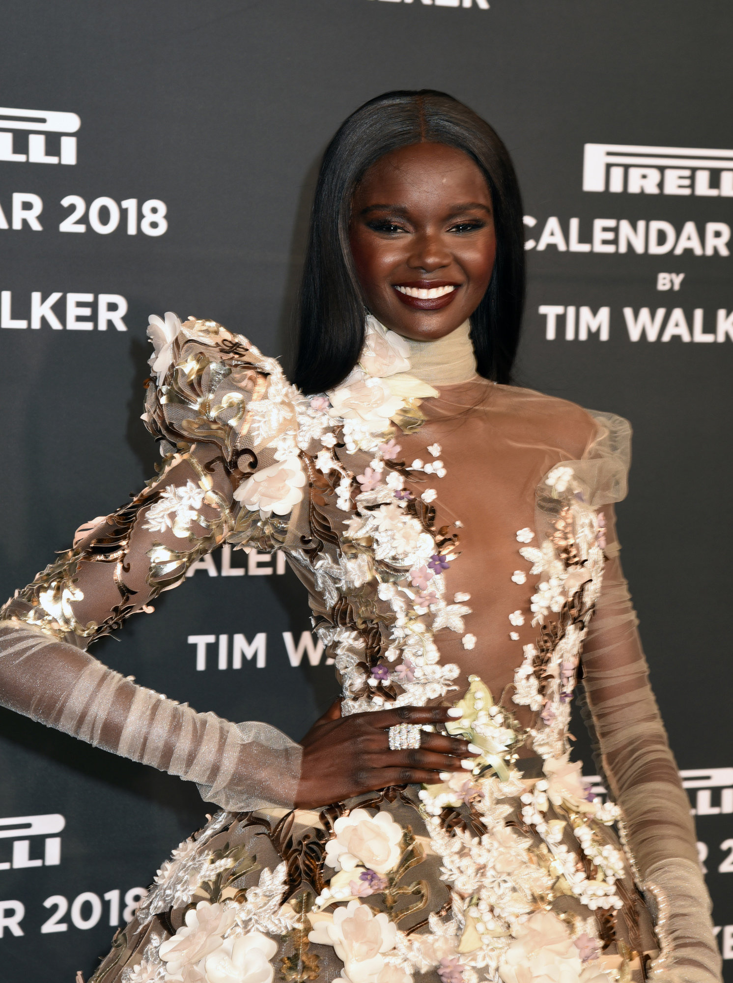 Whether wearing a minimalist black dress or a dramatic white gown, Thot has her signature hairstyle DOWN.
