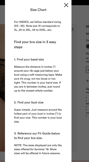 Even if the brand didn't offer larger than a size 3X at its first drop (it's a little disappointing that's the largest size offered currently), it at least could've provided a size chart for the sizes (bras AND bottoms) it did sell.