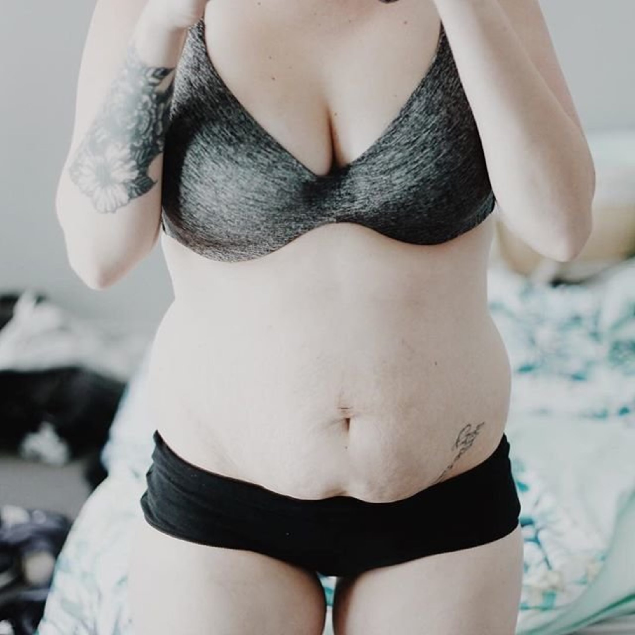 "[My body] has made three children and two births. A caesarean section, excess skin, pregnancy stripes, and muscles that have pulled apart #rektusdiastase. That's me. The miracle of life."