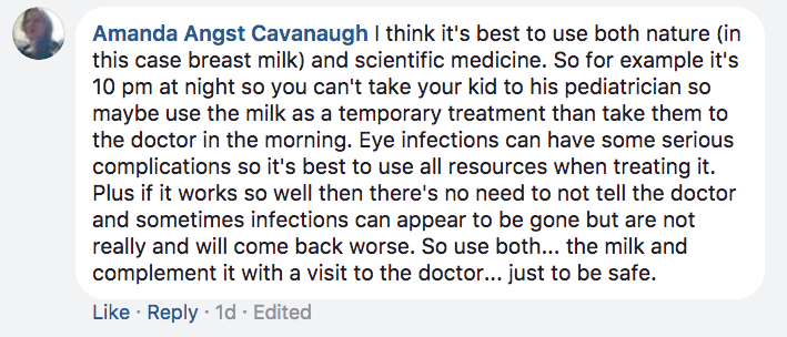 Women flooded the comments with their own experiences of using breast milk on both their kids and themselves for everything from burns, rashes, stuffy noses, diaper rashes, to even cold sores.