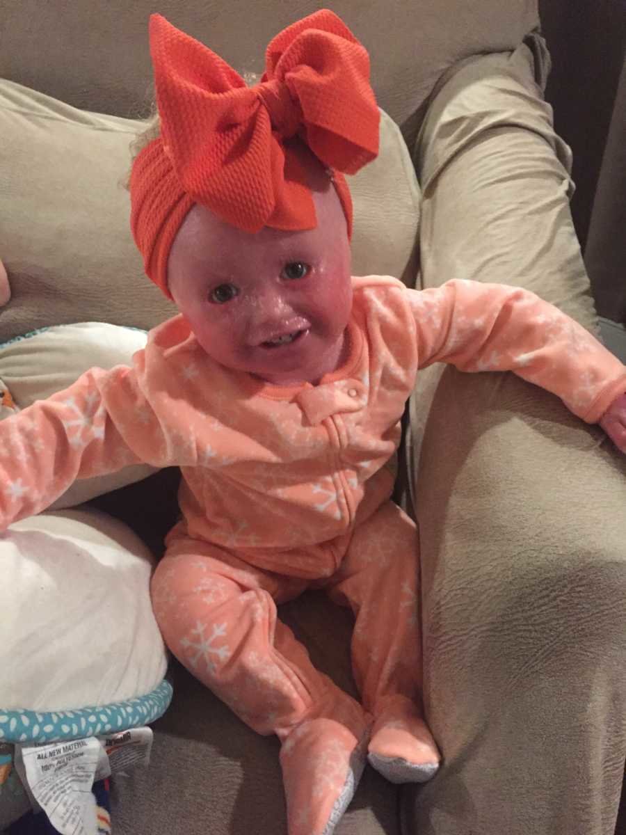 I decided to focus on what I could have and not what I couldn’t. I decided that if Anna could wear only fleece, then I would pick the cutest fleece pajamas I could find, and I would match her hat every day. As time went on, Anna’s skin shed the extra layers, and I became more confident in caring for her. My sister and I tried every type of lotion and oil. For her head, I worked for hours to remove the extra skin. Unfortunately, with it came all of her hair. I set small goals, and each time I reached one, I celebrated in a big way.