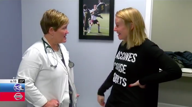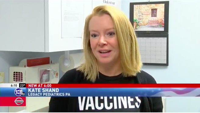 Kate Shand, a PA at Legacy Pediatrics, told reporters that the idea for these brilliant shirts came from seeing the message "Vaccines Cause Adults" being spread online in a meme, according to ABC 13 WHAM,