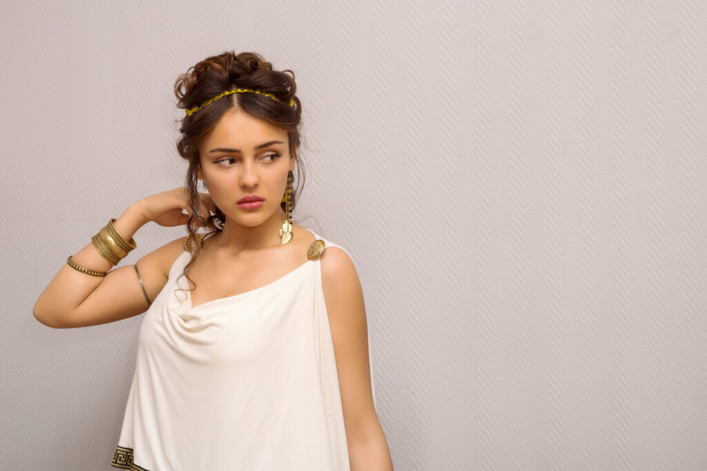 This is a pretty classic college costume I think many of us have done, but easy in a pinch instead of just being a ghost. Use a white sheet or flowy dress (you can get a very cheap white maxi dress online) add a gold belt, and layered jewelry, simple but stunning. Go all out by adding some ivy from the dollar store to your hair. Add body shimmer and soft curls for that extra touch! This one is even a great option if you have a teen begging for a last-minute Halloween costume.