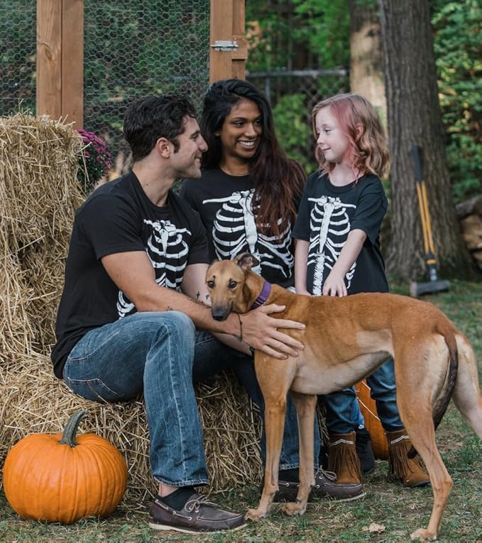 If you’ve got a partner who isn’t thrilled about dressing up don’t worry, there’s a T-shirt for literally everything. For our Magic School Bus look, I got my husband a tee with a school bus on it so he was “The Bus.” Problem solved and on theme! The options are countless. Skeleton tees, pumpkins, ghosts, etc.