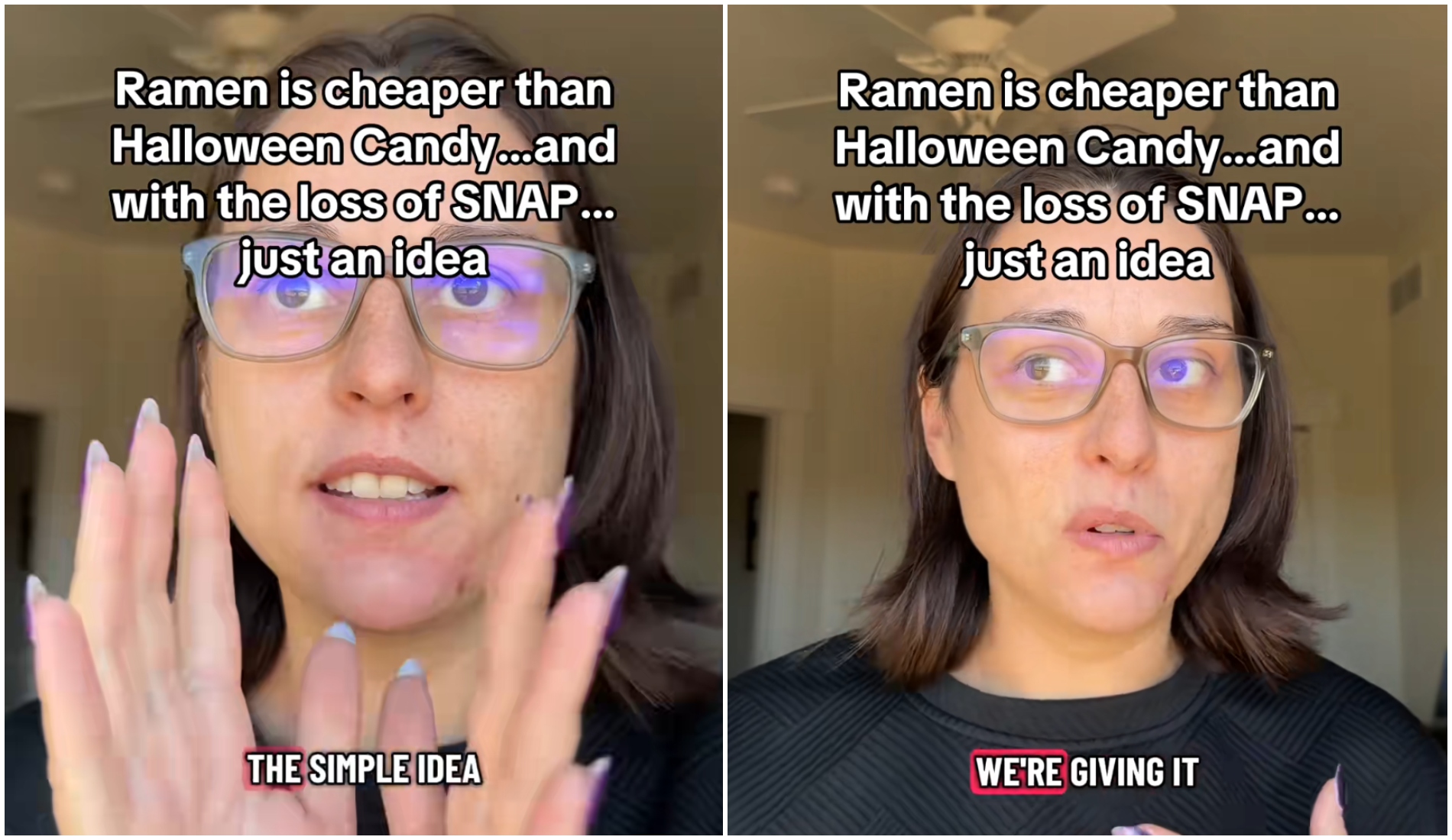 In her video, the mom shares that “ramen is way cheaper than Halloween candy” and goes into her idea of what to hand out on Halloween instead of or even in addition to candy. Some preteens and young teenagers who still go trick-or-treating might even prefer something they can make and eat instead of a mini candy bar.